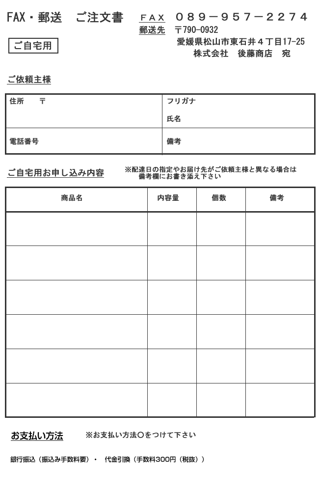 -ご自宅用注文用紙-