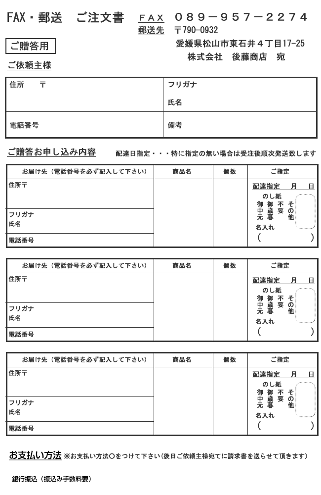 -ご贈答用注文用紙-